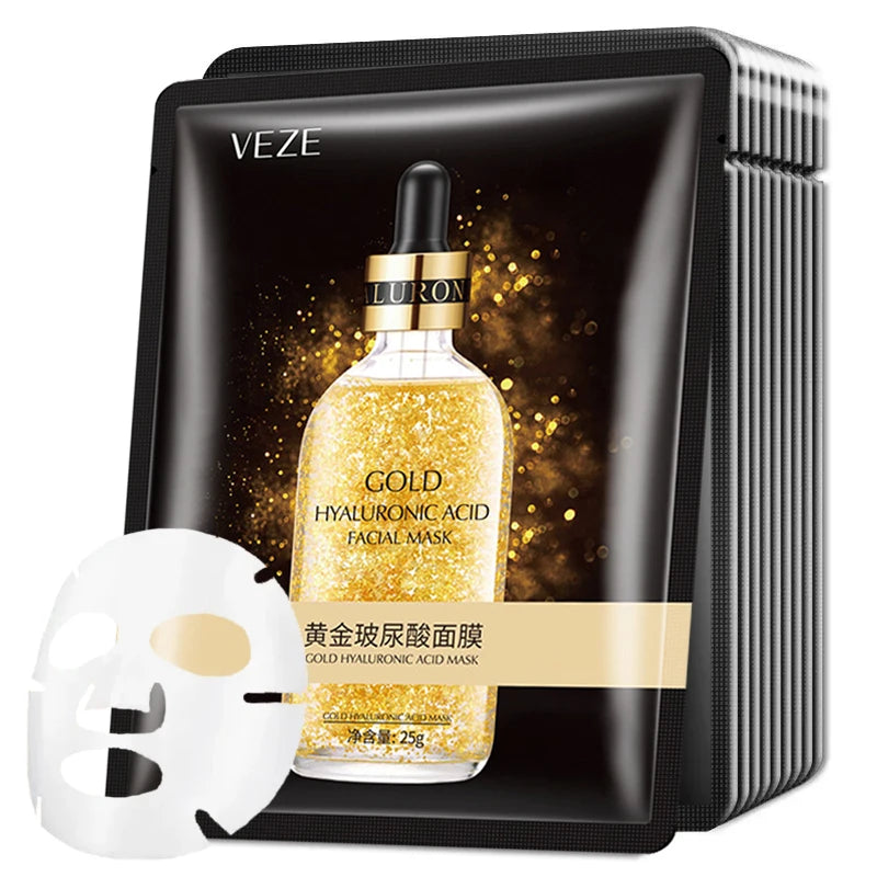 10pcs 24K Gold Hyaluronic Acid Face Mask